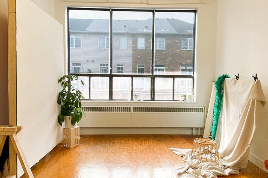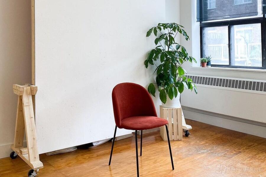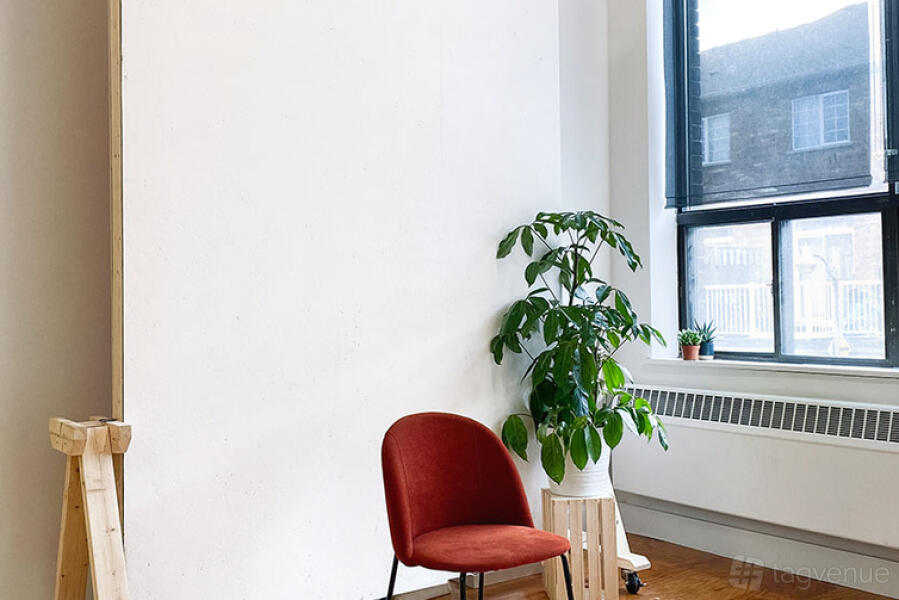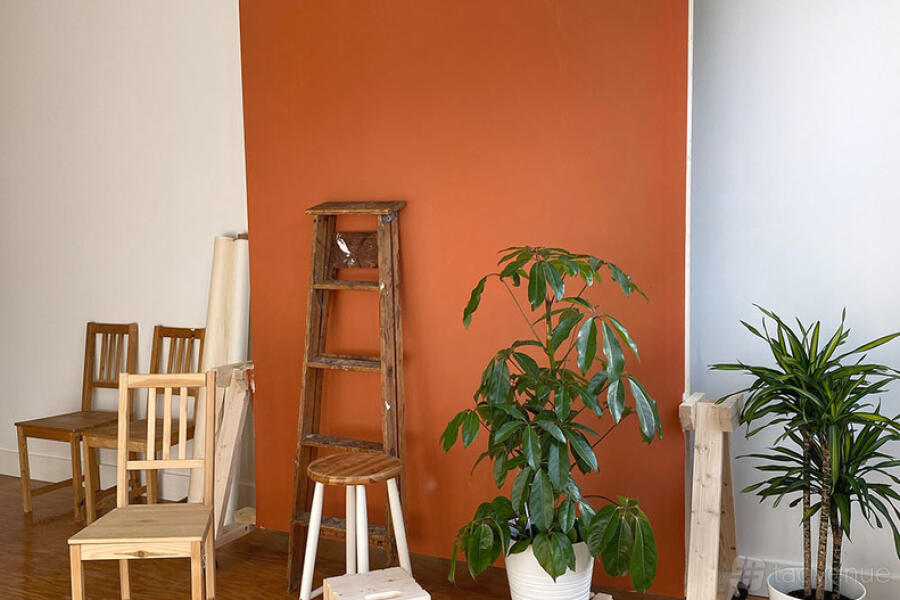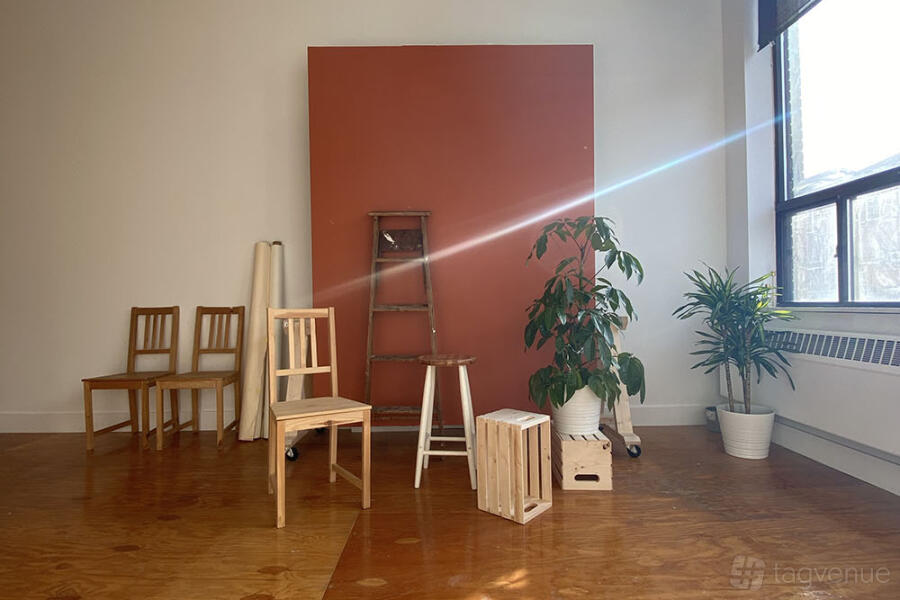 6x8-ft Rolling Backdrop Wall (Rust & Chantilly Lace) · Alien Bee’s 800 Strobe Lighting · Wireless Triggers · PLM Umbrella System · Heavy Duty C-Stand · Google Mini Sound System · 8ft Work Table · Seamless Paper Rolls (Dove Grey, White, Cream) · Light and Medium Natural Linen Fabric · Assorted Plants · Wooden Painters Ladder · Apple Boxes · Clothing Rack · Vintage Stools and Chairs · Fibe Wifi