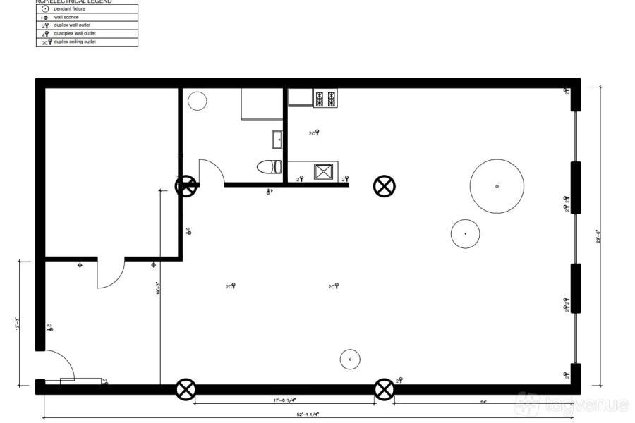 Usable space amounts to approximately ~1300 Square feet of flexible open studio space, and about ~300 Square feet for a single private bathroom/changeroom, and kitchen areas.
