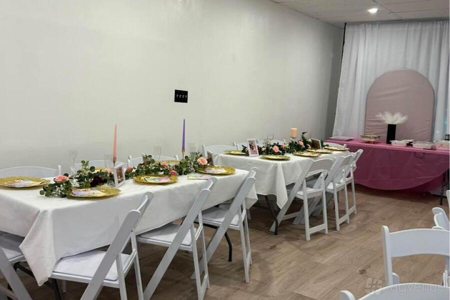 Our indoor area is 510 sq. ft., and the outdoor space is over 600 sq. ft., comfortably accommodating up to 30 guests.