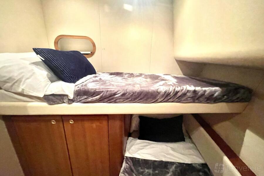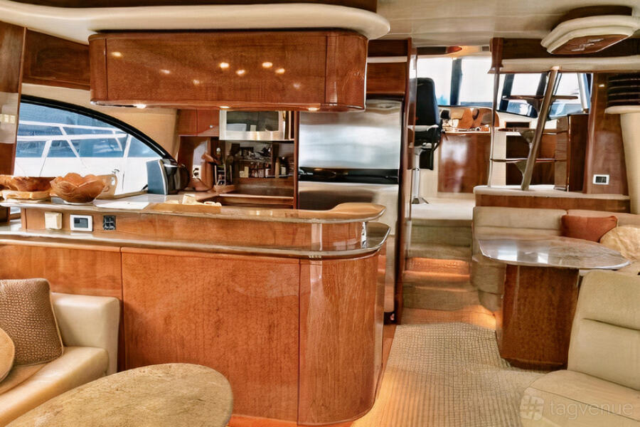 This stunning flybridge is fully equipped to ensure you have an unforgettable experience on the water. It can also serve as a venue for your special occasions, offering the most breathtaking views of the city.
