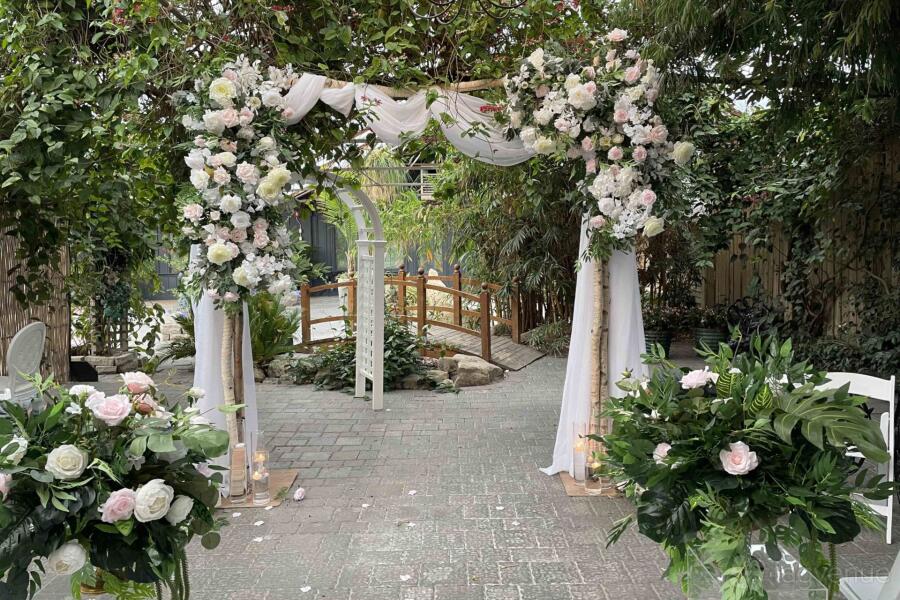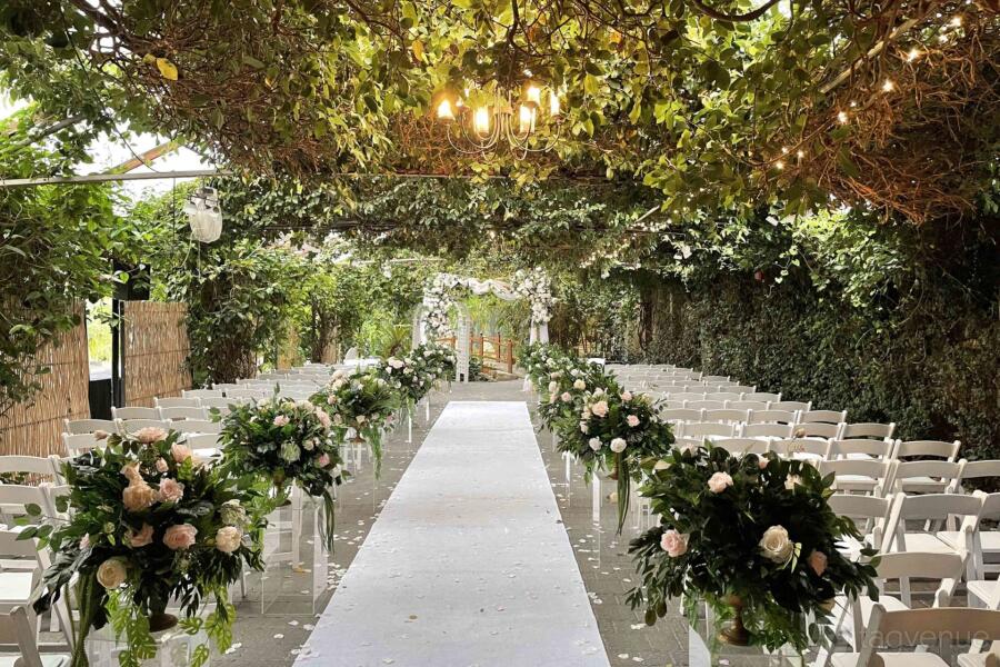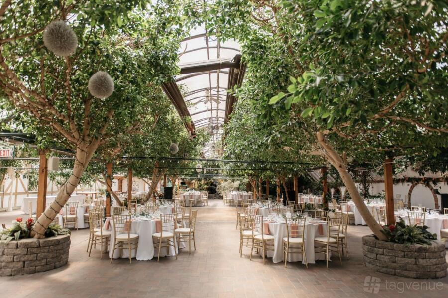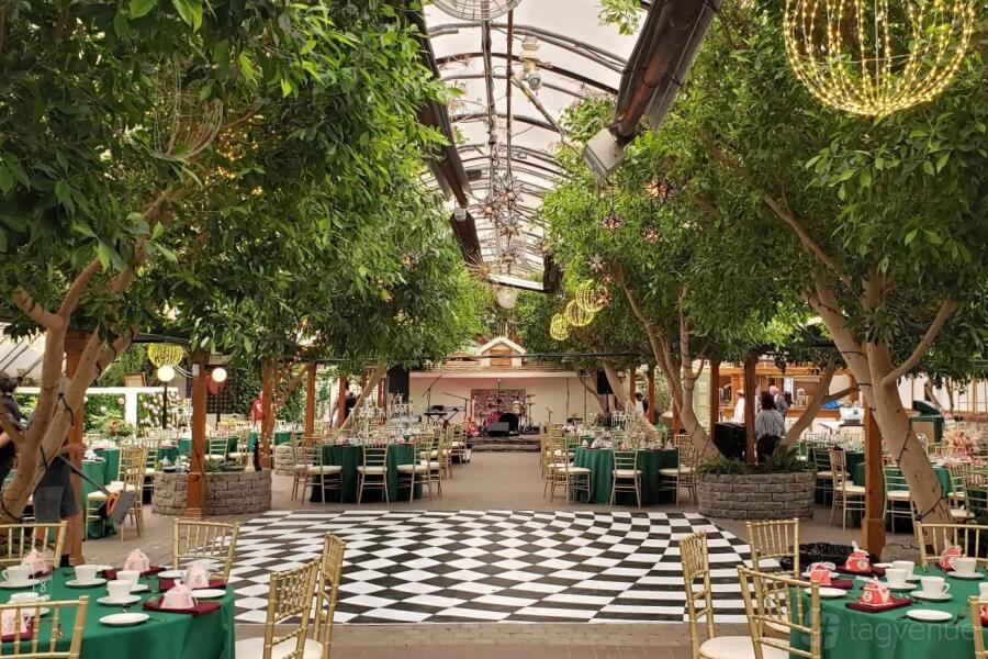 Guests will delight in the tranquil indoor waterfall, sweeping views of vibrant indoor flora, and luxurious surroundings. Following the wedding ceremony, take a stroll across the delightful wooden bridge to access your exclusive cocktail lounge in this paradise-like setting.
