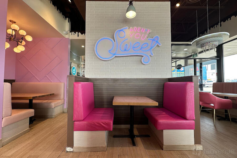 Step inside and be greeted by an atmosphere alive with color and character. Our playful and eclectic decor sets the scene for an unforgettable dessert experience. Each corner of the cafe is designed to enhance your visit, from the vibrant chairs and tables to the creatively themed wall art that inspires joy and indulgence.