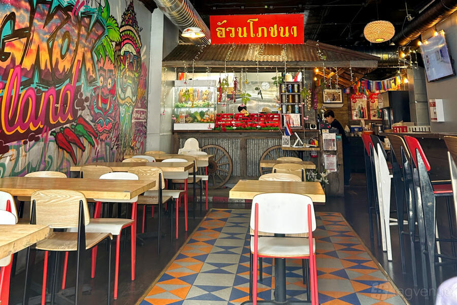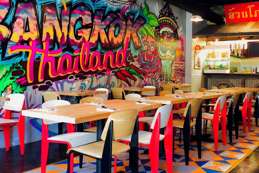 Inside, you'll find a tastefully decorated space that reflects the colorful and spirited essence of Bangkok. The interior boasts traditional Thai elements and contemporary decor, creating a cozy yet lively setting perfect for any dining occasion.