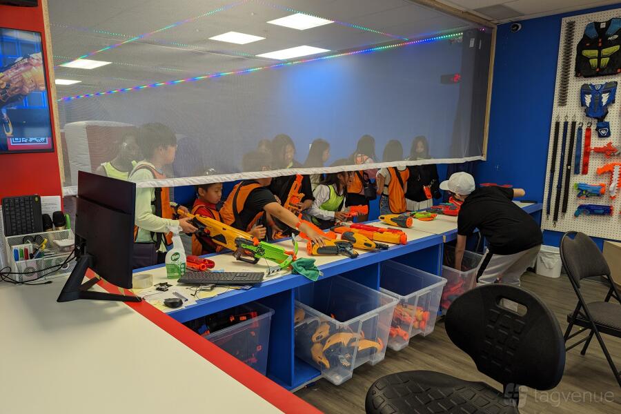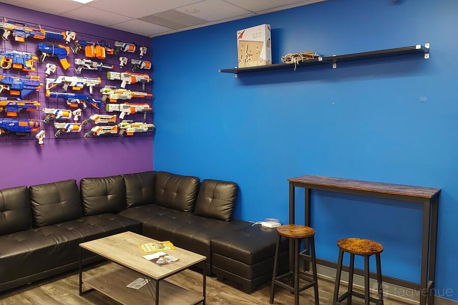 The arena boasts inflatable barriers for epic Nerf, airsoft, or laser tag battles, while the neon-lit shooting range is perfect for testing your skills like a pro. Got a party or team event? We’ve got you covered with flexible spaces tailored for kids’ birthdays, corporate team-building, or private celebrations. Our lounge is the ultimate chill spot—ideal for grabbing snacks, swapping stories, or taking a breather between rounds.
