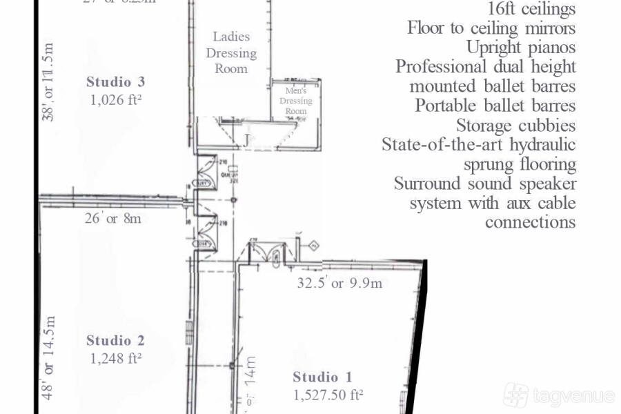 We have big studios with sprung floors for injury prevention and full-length mirrors. Here, you can find private lesson rooms for one-on-one coaching, flexible space for group classes, rehearsals, workshops, photo/video shoots, a modern sound system for clear music, natural light, and other amenities, including changing rooms, lockers, and a reception area.