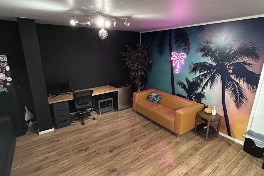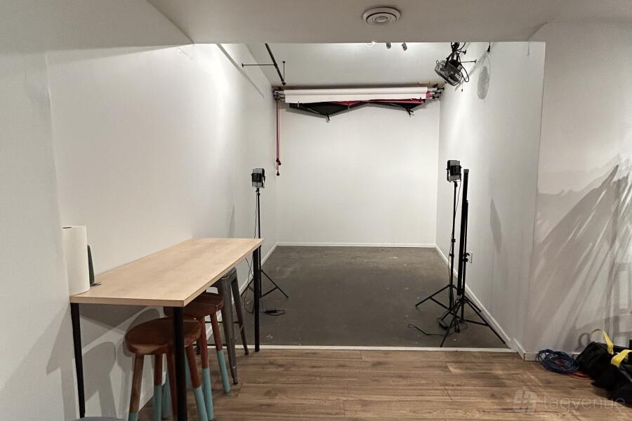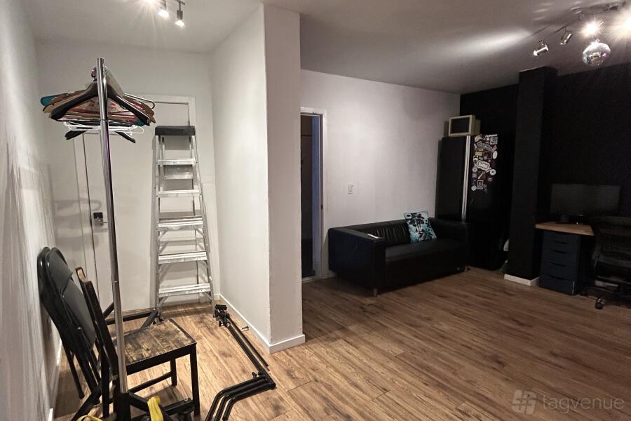 Our creative space is designed for independent creatives. Our large room is 24'L x 11'W x 10'H with a ceiling to floor backdrop and multiple savage paper colours including white, green, black, red, and yellow. We have 2 x 4' Quasar crossfades, a 2 ft RGB wand, and a projector. Great for film or photography and could work for small events.