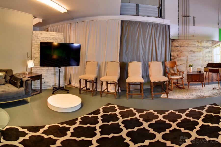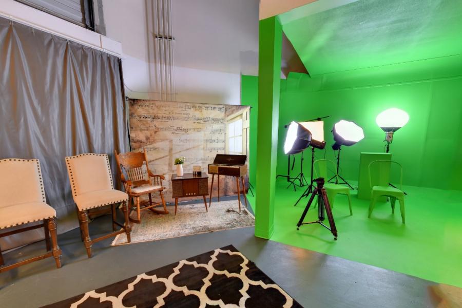 Our 2000 sq ft studio boasts two floors of endless possibilities. On the first floor, you'll find our state-of-the-art green screen studio, perfect for immersive video production.