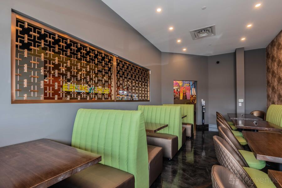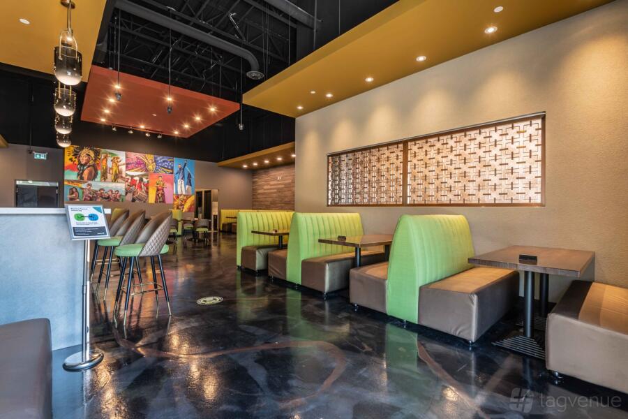 The versatile seating arrangement includes classic tables and cozy booths, all set against floor-to-ceiling windows that allow natural light to flood the space. The menu is a culinary journey through the diverse flavors of Trinidad & Tobago and the Caribbean, maintaining a multicultural aspect with a fusion of West Indian, Caribbean, and Asian cuisines.