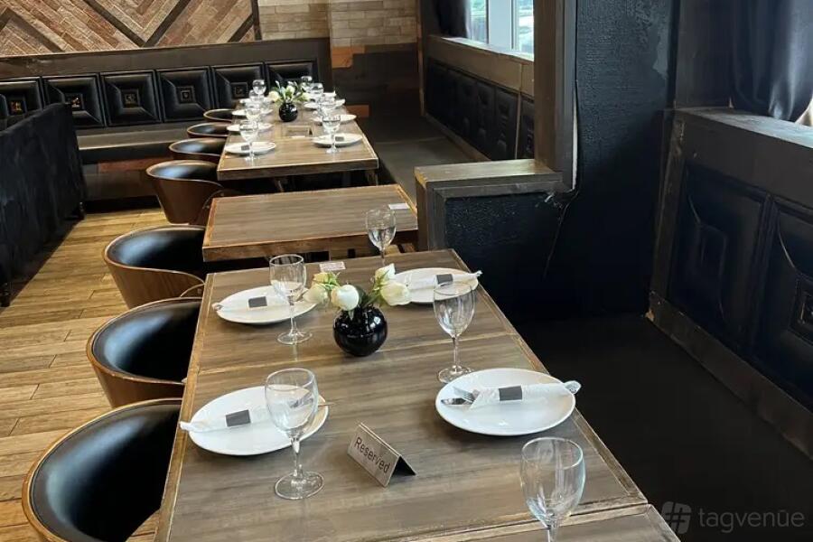 The venue’s rustic-industrial charm shines through with exposed wooden beams, chic finishes, and modern lighting that create a warm yet contemporary atmosphere. Whether you’re hosting a corporate dinner, an intimate gathering in the semi-private booths, or a lively celebration, MiM’s versatile layout and stylish design have you covered. Looking for a spot that combines urban flair with a cozy vibe? Let’s make your next event unforgettable at MiM!