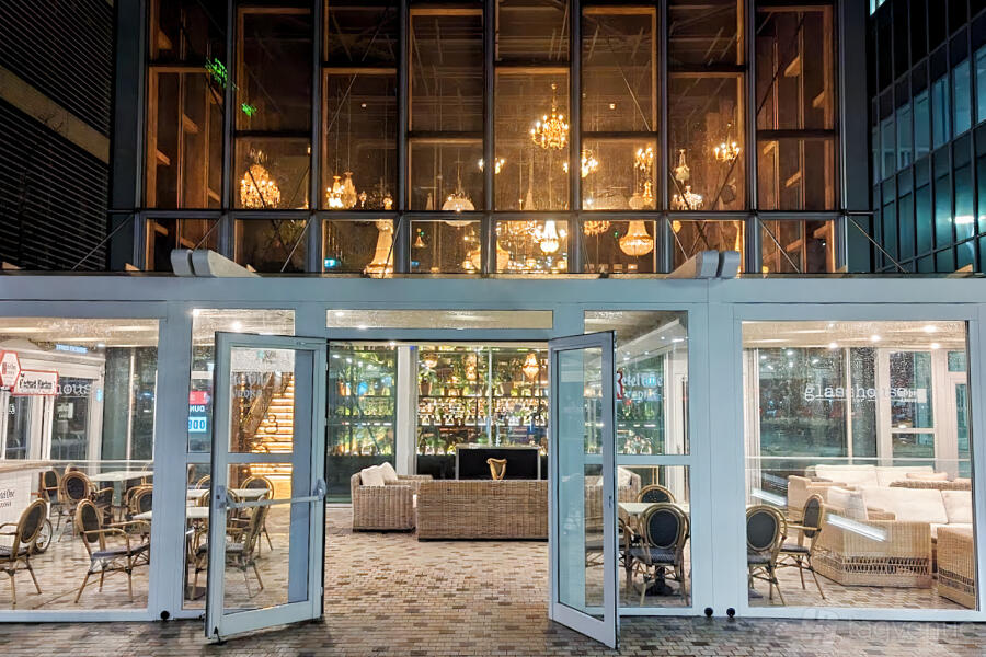 The Mezzanine at The Glasshouse Bar offers a semi-private elevated space with panoramic views of the main bar and surroundings.