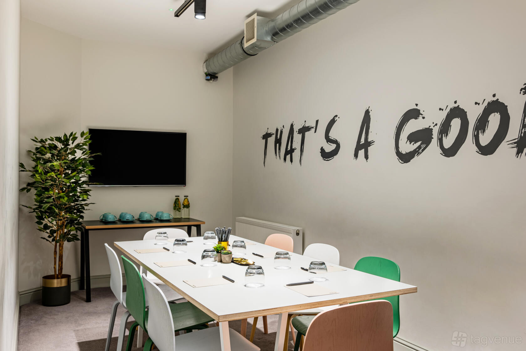 The Hoxton Meeting Room is equipped with high-speed Wi-Fi, a modern flat-screen TV, and conferencing tools designed to make meetings run efficiently.