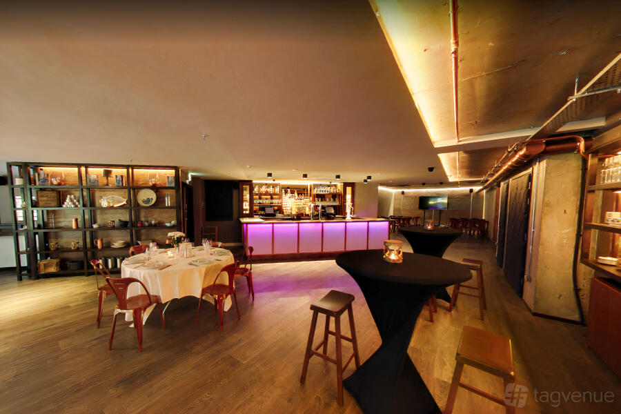 The mezzanine is where the theatre happens – TV show cooking demonstrations one day, a wedding the next, a product launch following that and a private dinner in the evening. The space is versatile and can accommodate all types of events.