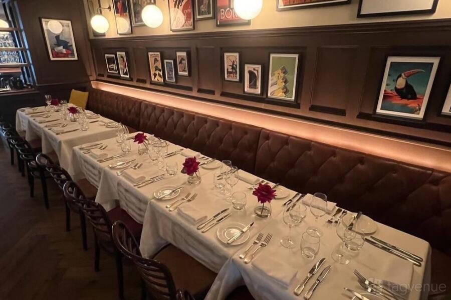 Looking for a private room for your next event near Dublin? Bresson Restaurant, located in Monkstown Crescent, offers a private space with seats for up to 45 guests. The room features a fireplace, flexible table layouts, and a vintage-like elegant interior, with dim lighting creating a warm and inviting atmosphere.