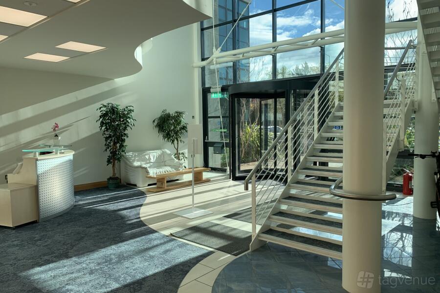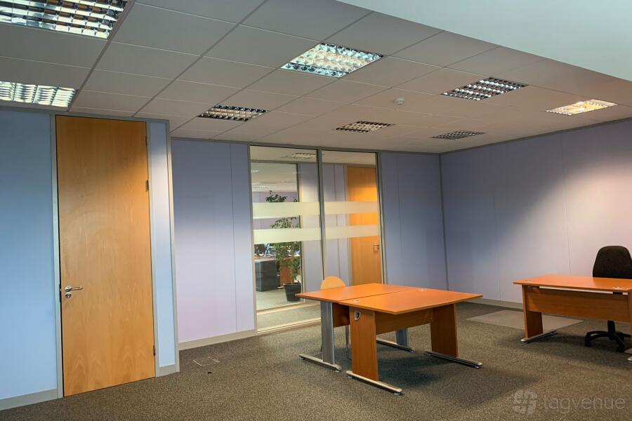 A modern own door three-storey office building with elevators throughout. The focal point is the bright atrium and reception area. Each floor is self-contained and includes bathrooms and kitchen facilities, comprising ample seating, tea / coffee making equipment, and fridge space. Every office is furnished to a high quality.
