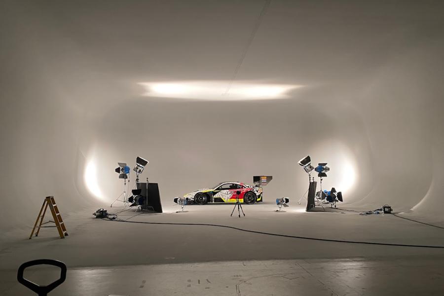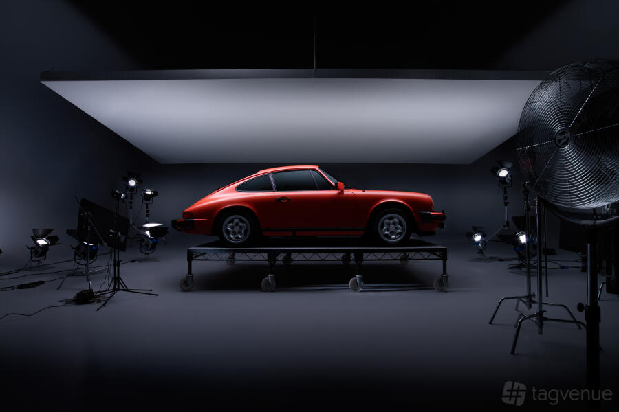 Grey infinity cove with additional shutter access. Cove dimensions: 7.8m (W) x 6.6m (L) x 2.7m (H) Total studio space: 11.6m (L) Shutter: 4m x 4.2m Standard Lighting Kit: 5 x 2K spot & stands 4 x 1K spot & stands Stands & extra lights can be used from other studios if available Additional Information: Power included WiFi connected workstations and production desks Standard shooting hours, 8am to 6pm. (Overtime & weekend rates available) Deliveries possible from 7.30am