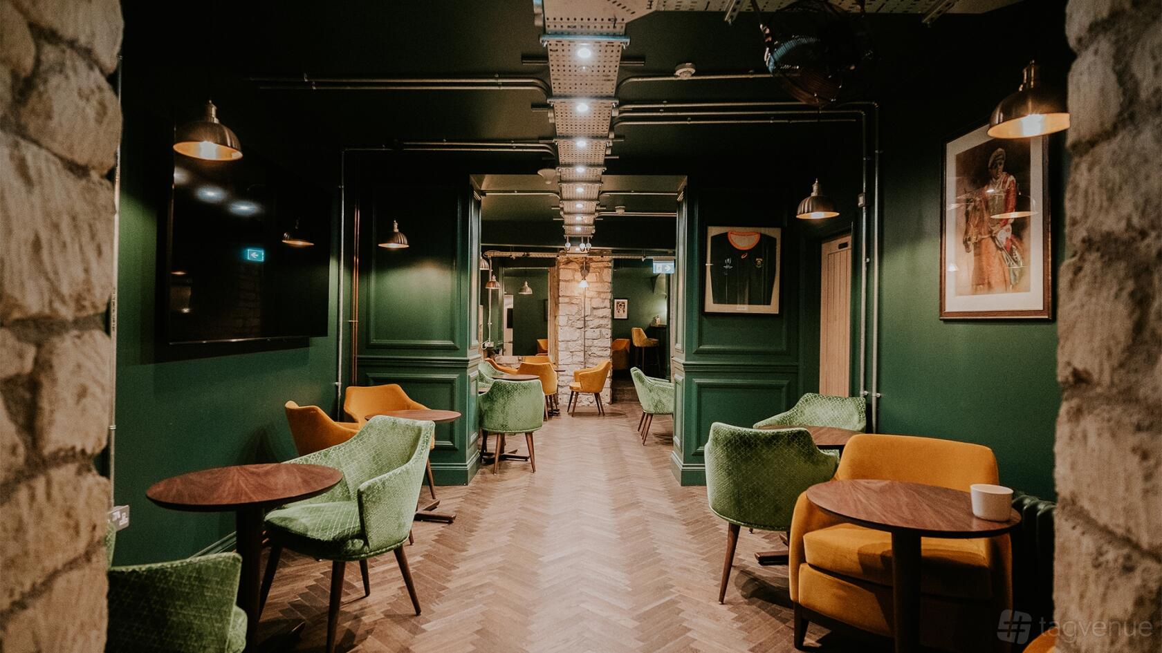The interior is thoughtfully arranged to support both seated and standing setups, making it flexible for various event styles. Stylish seating arrangements, complete with comfortable armchairs and wooden tables, enhance the aesthetic appeal while ensuring guest comfort. With additional amenities and catering options available, this space is well-suited for any occasion, offering an unforgettable setting that adds a unique touch to your event.