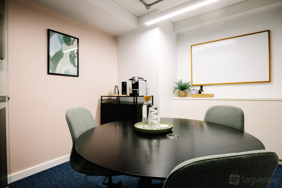 The Milewater meeting room comfortably seats up to 6 individuals. It features a large plasma TV screen, Crestron video conferencing system, and a magnetic whiteboard ideal for brainstorming sessions and presentations.