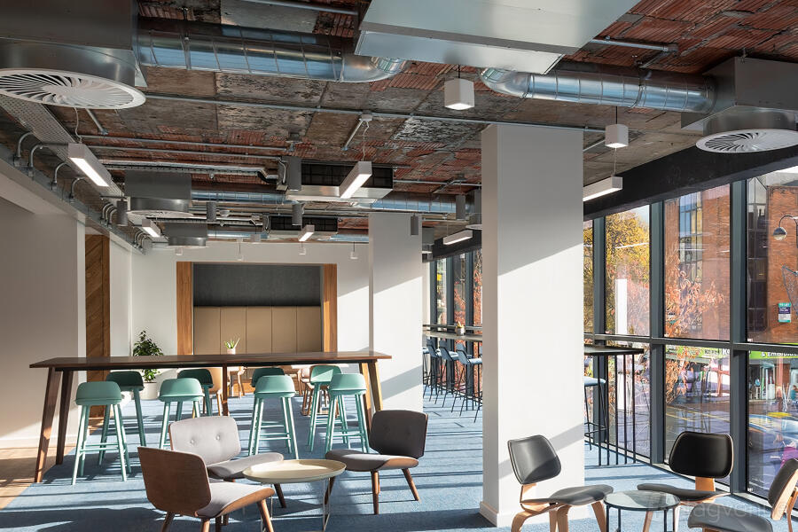 We occupy 5 and a half floors of the stunningly bright and modern River House Building. The building has a large terrace with views over the iconic Harland and Wolff cranes and the Albert Memorial Clock. With plenty of outdoor seating and south facing it’s the perfect spot for a sundowner at the end of a hard day’s work.