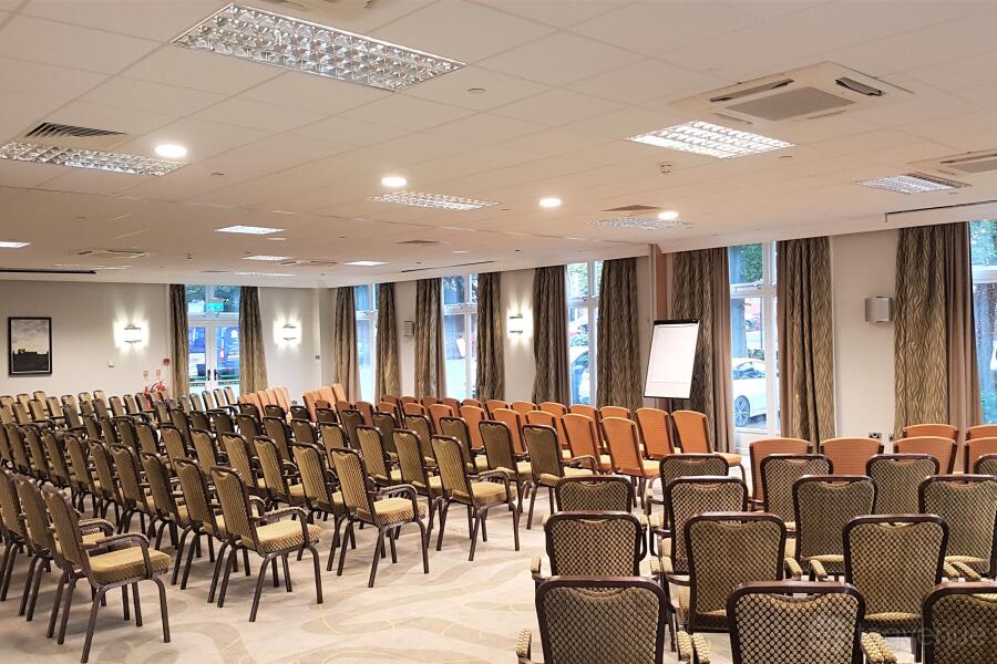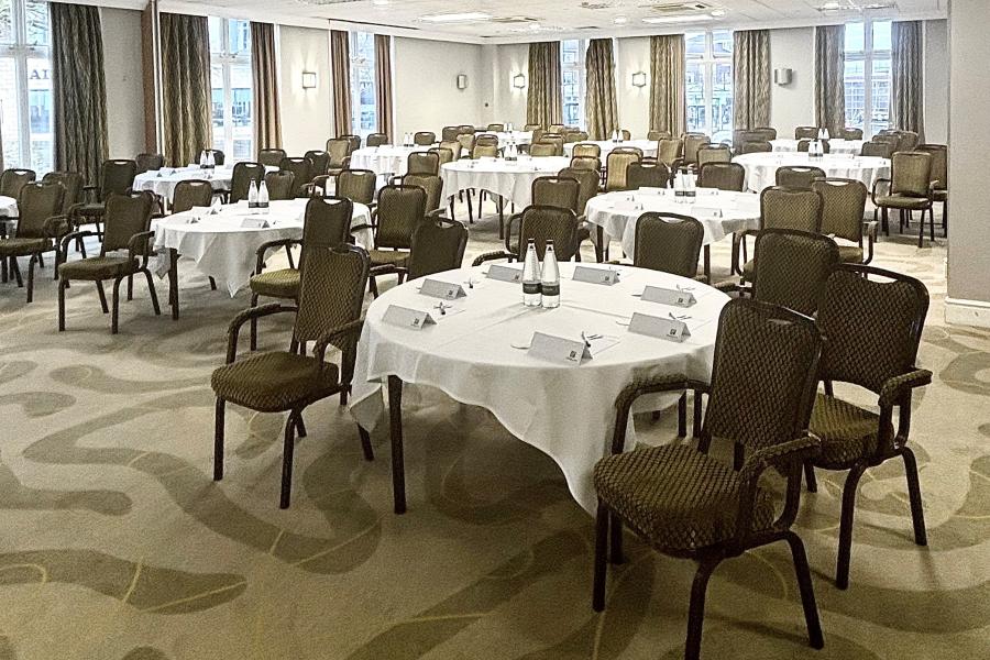This versatile space can accommodate between 50 - 100 people in various set-ups; the Leamington Suite has natural daylight and floor to ceiling windows plus air conditioning.
