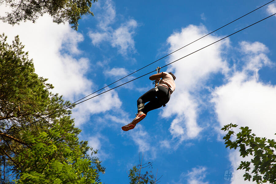 This great confidence builder will have you ducking and diving through the Half Noughts and Crosses, flying by on the zip wire and testing your nerves on the wobbly bridges. Don’t forget to have your camera ready as the Flying Carpet is a picture perfect moment. This one will leave you smiling all day.