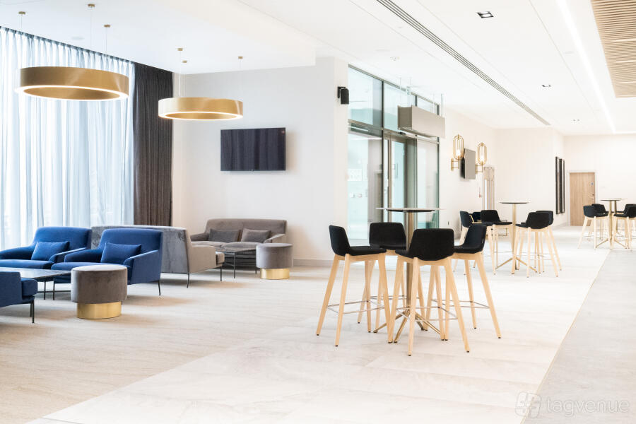 A fully stocked hydration station is conveniently located just outside the space (fees apply), and a dedicated host is positioned across the first-floor lobby, ready to assist event organizers throughout their visit.