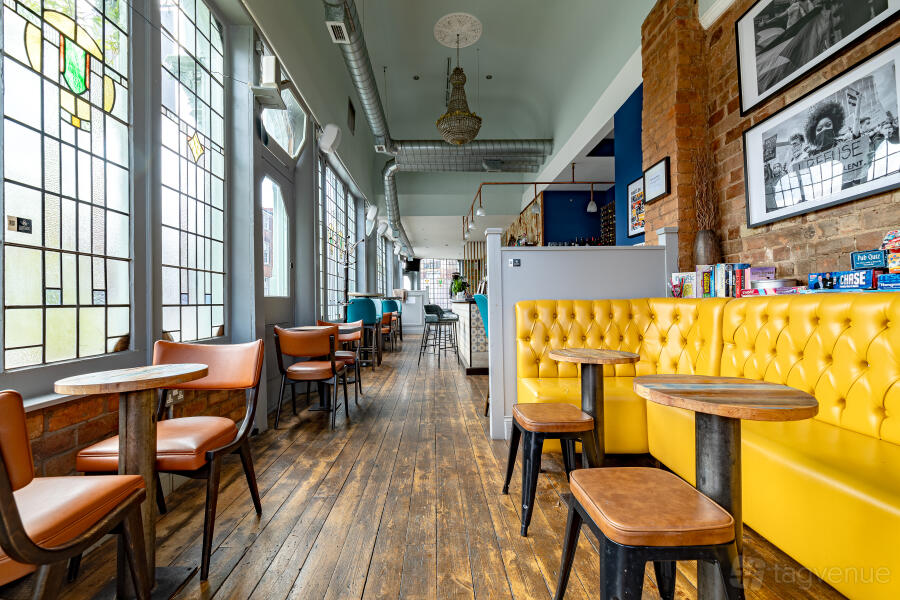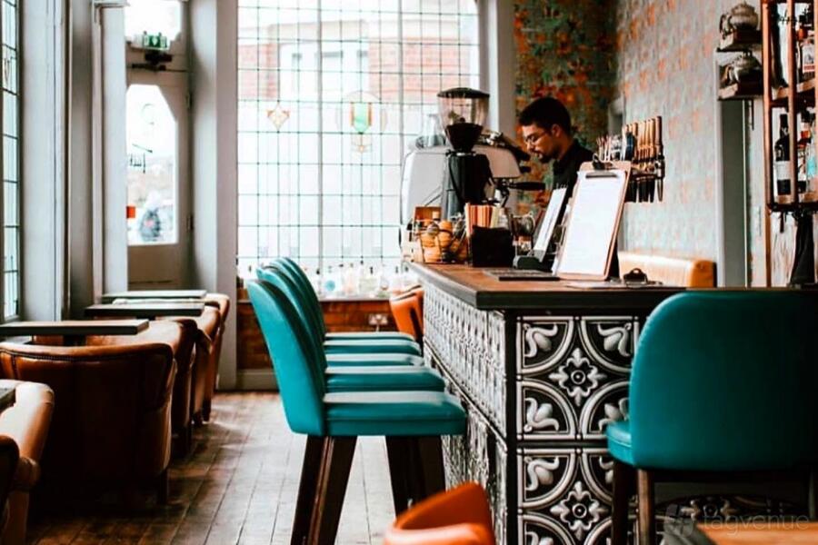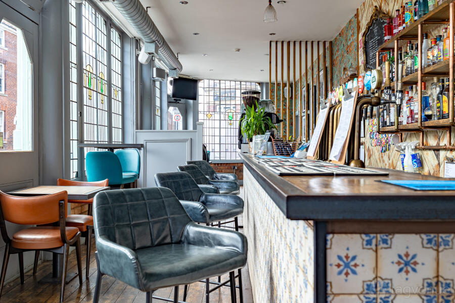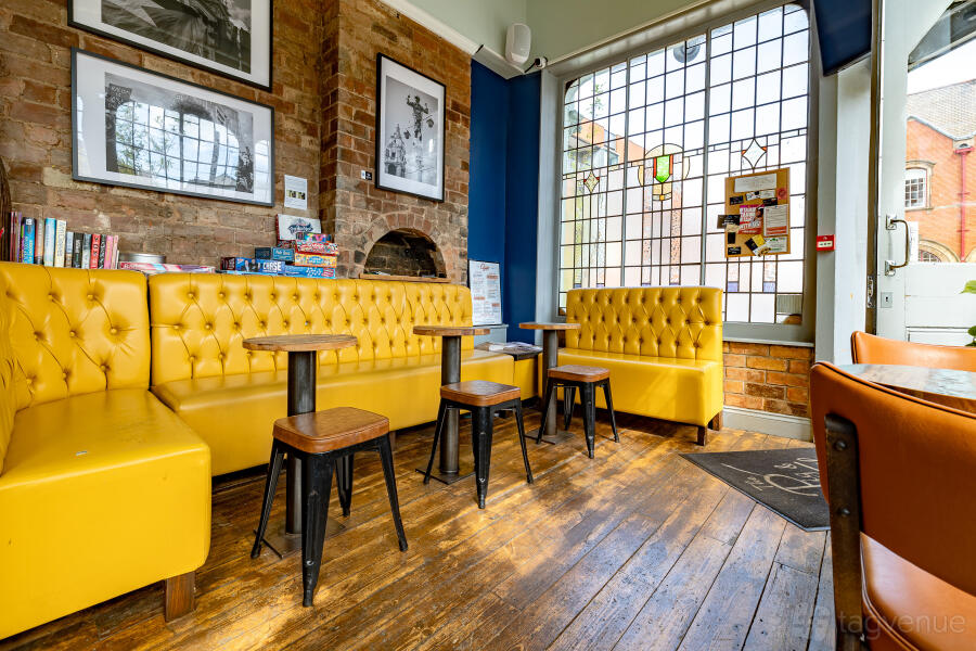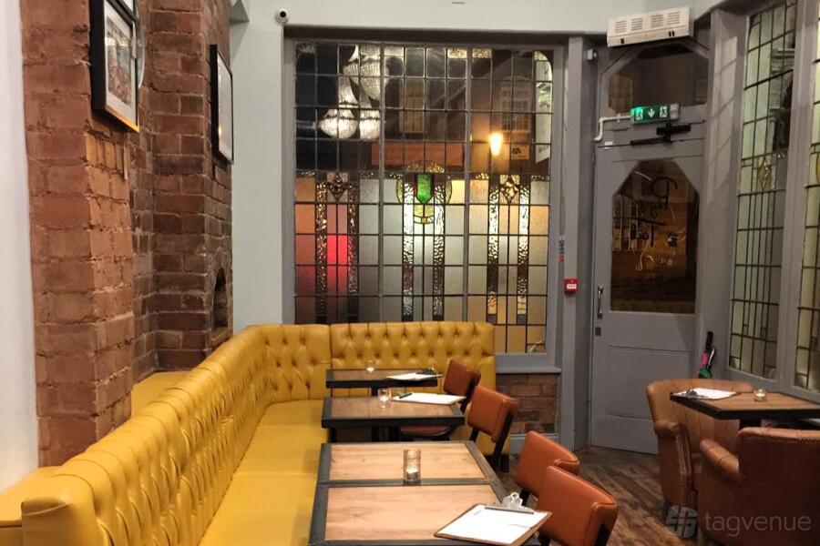 We are a small, quirky independent venue located in the Jewellery Quarter. Our interior is both in keeping with a traditional pub and incorporating the amazing period details of the space, whilst also being modern, vibrant and fun. The colourful wallpaper, leather seating, and beautiful tiled bar all make us a chic but relaxed setting.