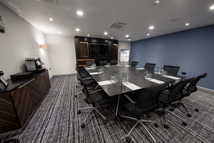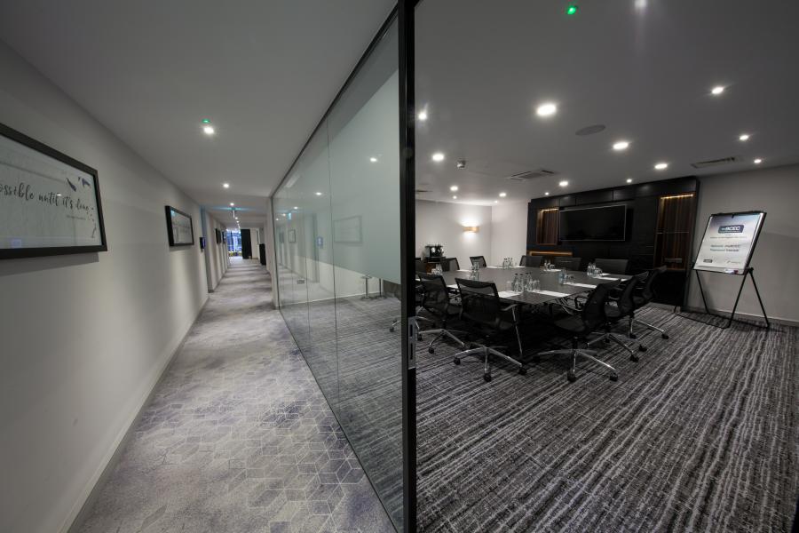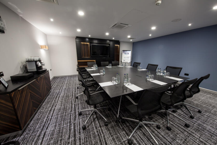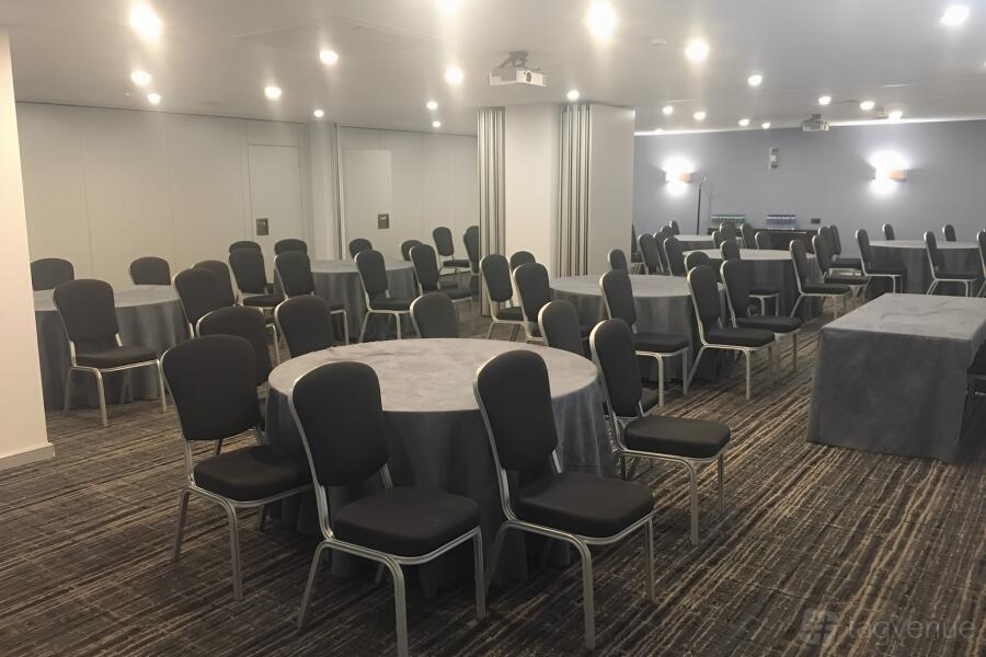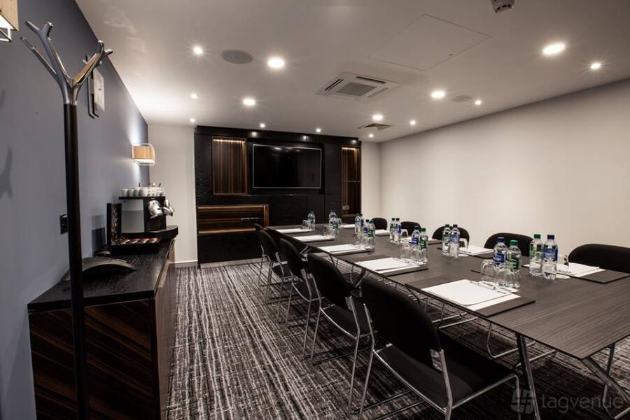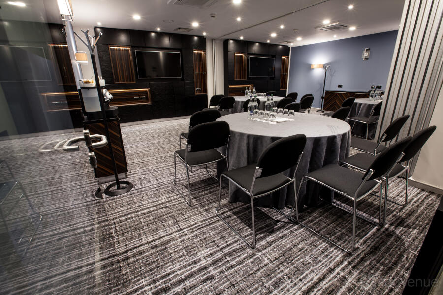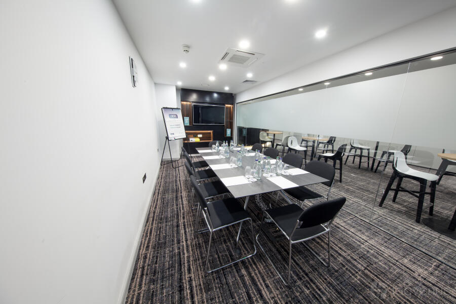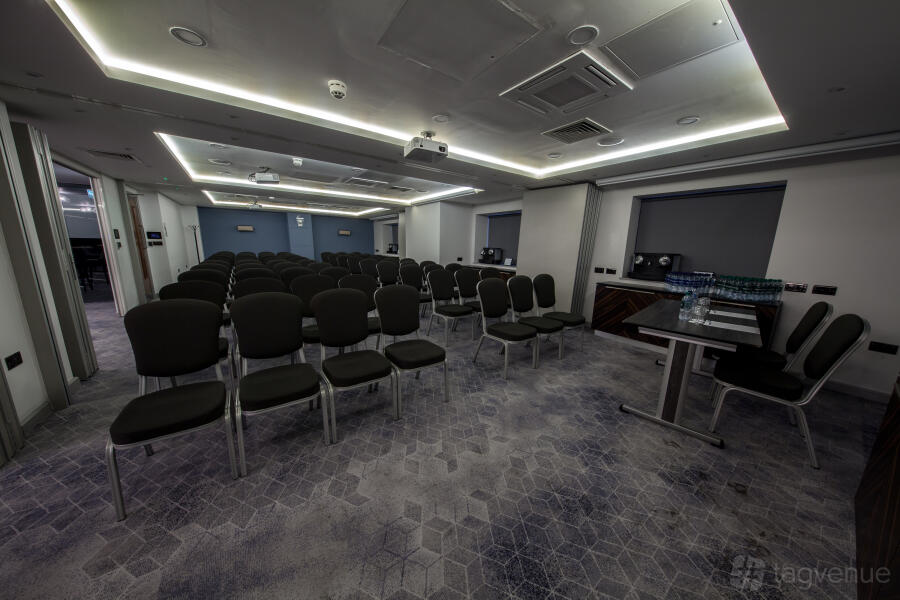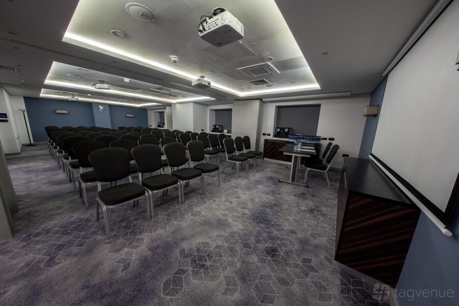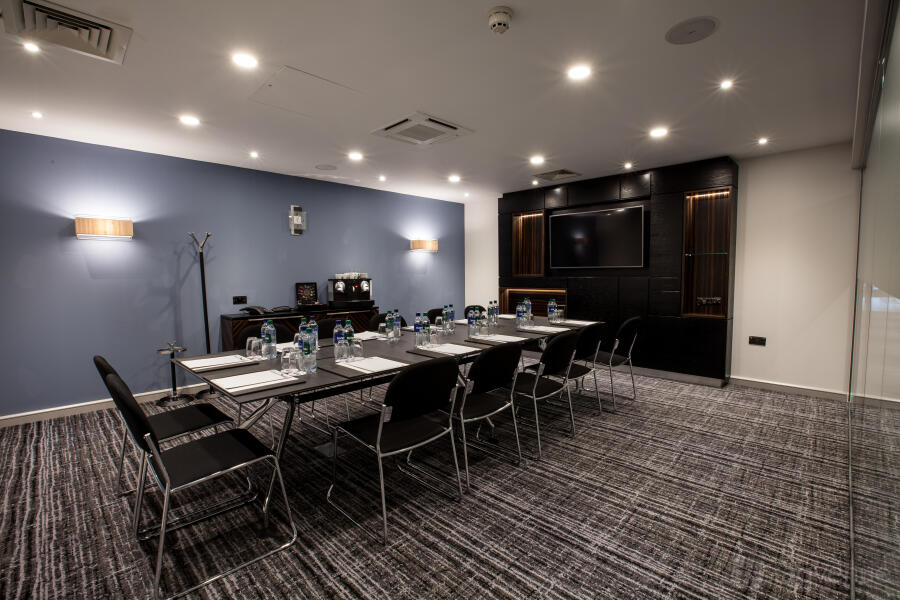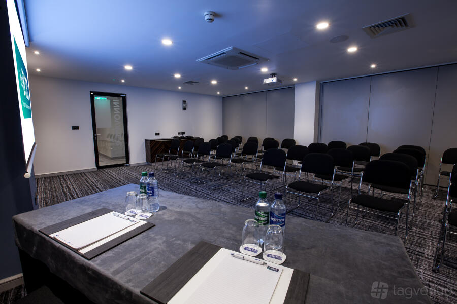 An excellent meeting space that can accommodate up to 70 delegates (in a theatre style). The space is perfect for any kind of corporate event. The room is equipped with a High spec drop down screen and NEC ceiling mounted projector with Clickshare, VGA and HDMI connectivity. The room is complete with built in Bose surround sound and there is also built in wall power points with USB socket, wall mounted hand sanitiser dispenser, in room controlled air conditioning and glass panelling providing secondary daylight.