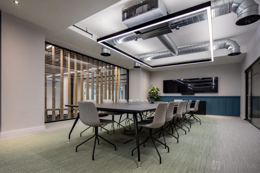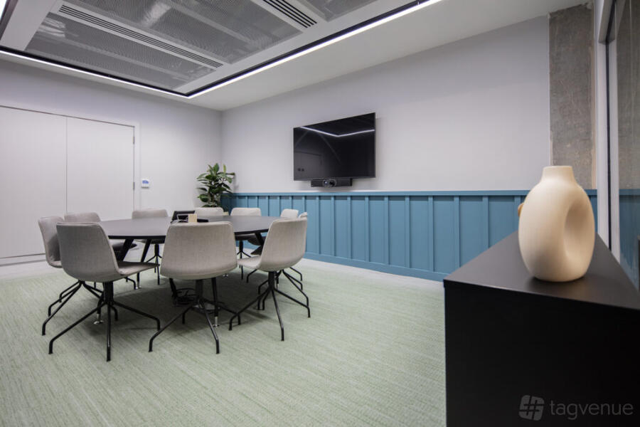 Introducing The Conservatory, a meeting room designed for up to 10 people with convenient access to a communal kitchen area. Equipped with Zoom, Microsoft Teams, Google Meet, and screenshare capabilities.