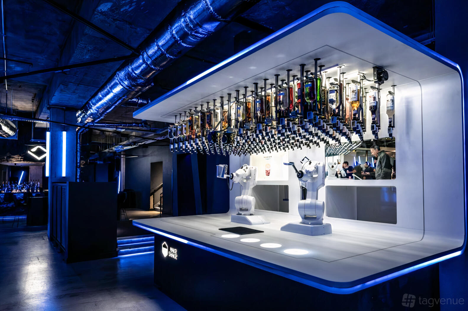Our VIP lounge combines industrial-futuristic design with a high-energy atmosphere—ideal for team socials, client mixers, product launches, and more. Just steps from our sleek “human bar” and state-of-the-art robotic bartender, it’s where business meets buzz.
