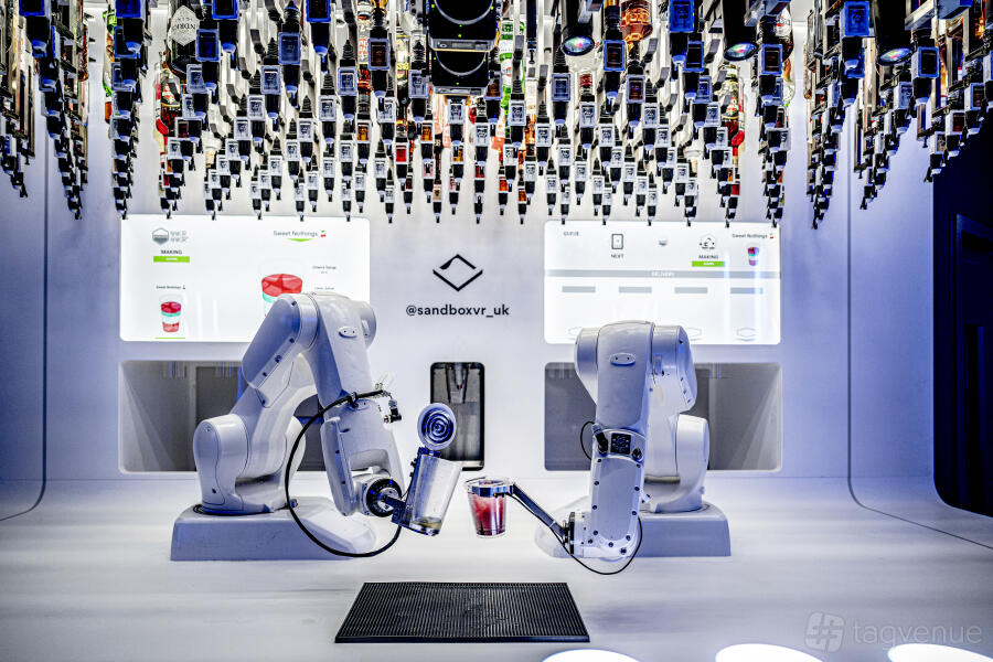 After your VR experience, your group can relax in our post-experience lounge where you can watch personalised after-movies combining virtual and real-world footage of your adventure. Enjoy a fantastic selection of beverages, including expertly crafted cocktails and mocktails served by Toni, our resident robotic bartender — the only one of its kind in the UK — alongside a fully stocked human bar.