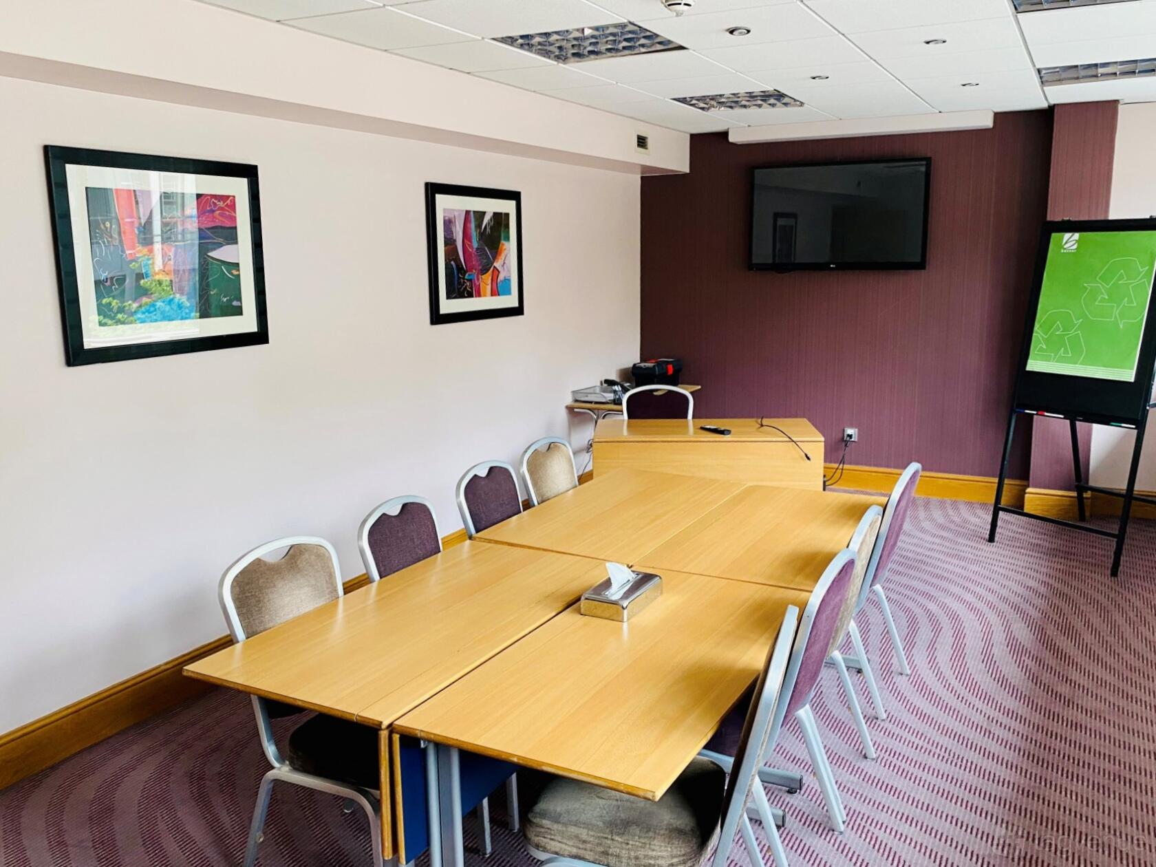Looking for a meeting room in Birmingham's Westside area? The Leonardo Royal Hotel offers a bright space for up to 25 people, featuring a built-in LCD projector with screen, blackout facilities for presentations, adjustable air-conditioning, Wi-Fi and wired internet access. The room is also provided with stationery tool kits and offers flexible layout options.
