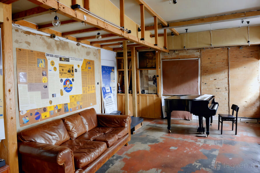 The Director's Office at The Old Print Works is a compact and private space with a capacity of up to 30 people. Designed for meetings, brainstorming sessions, and small-scale productions, it provides a quiet and functional setting. The room’s intimate size and simplicity make it ideal for focused work or smaller group activities.