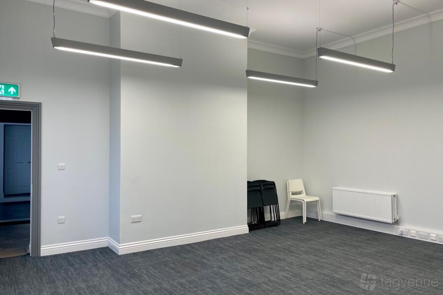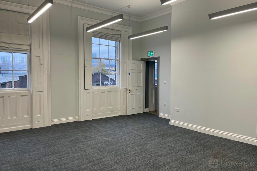 This space combines the historic charm of a Grade II listed building with modern practicality. The interconnected design allows for flexibility, with one room serving as the primary meeting area and the other as a breakout or support space.