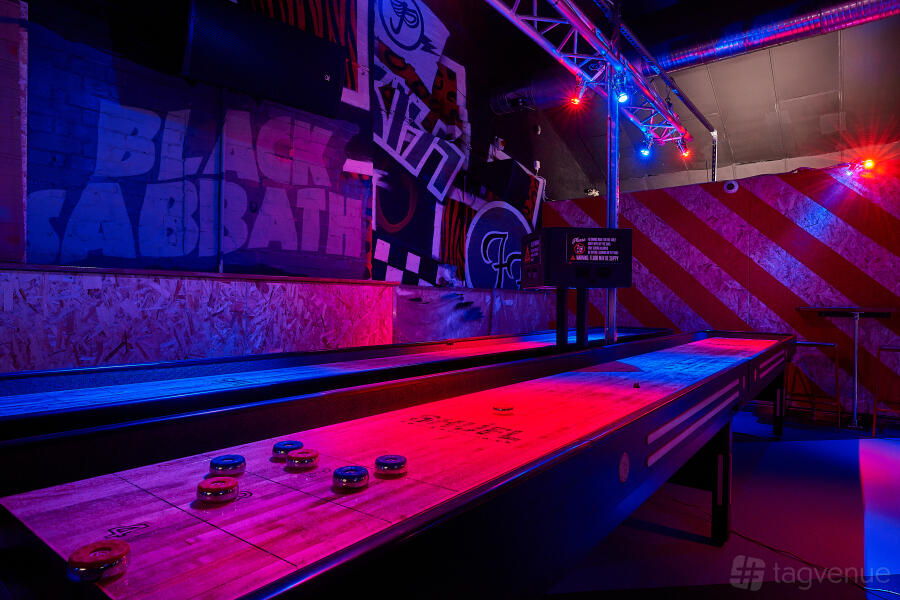 Spread across two floors, this dynamic venue offers an array of entertainment options, including 10 ten-pin bowling lanes, American pool tables, shuffleboard, and an assortment of other games.