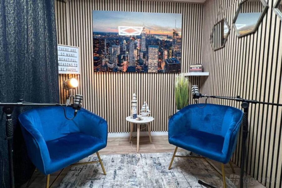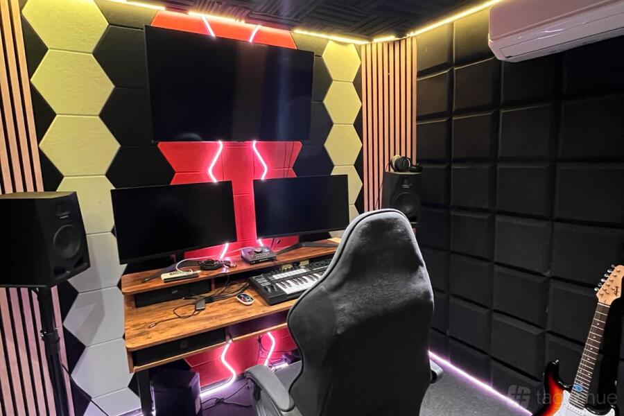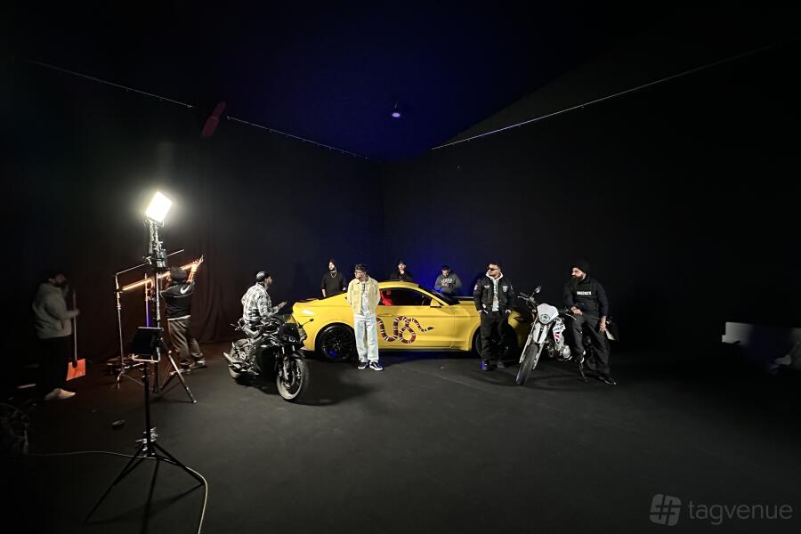We provide blue, green, black, and white screens for video production and music shoots, along with dedicated spaces for commercial ad shoots. Our setup includes fully equipped podcast studios, music recording rooms, and movie dubbing facilities.