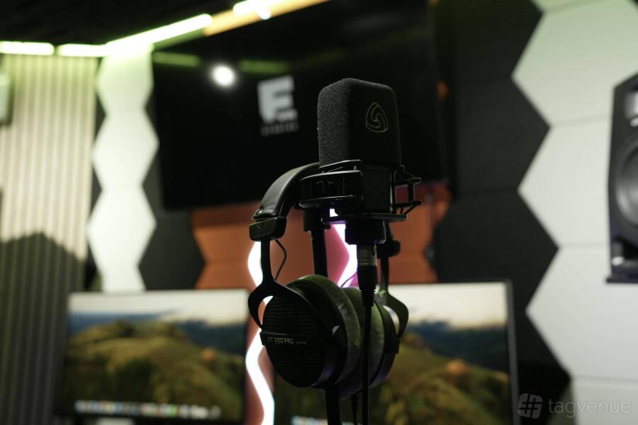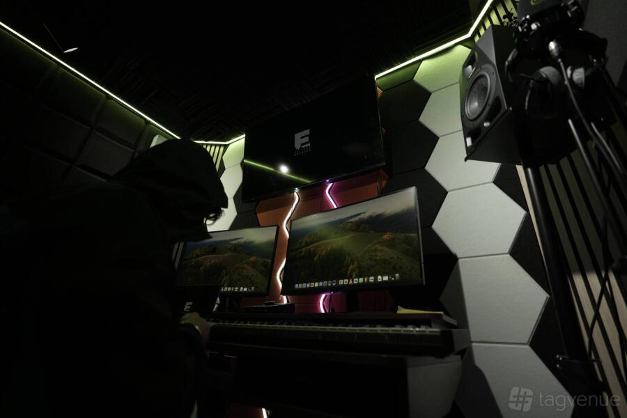 Our music studio has multiple monitors for audio mastering, dialogue dubbing, or any type of editing.