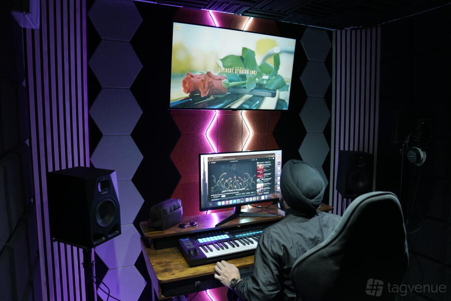 We provide blue, green, black, and white screens for video production and music shoots, along with dedicated spaces for commercial ad shoots. Our setup includes fully equipped podcast studios, music recording rooms, and movie dubbing facilities.