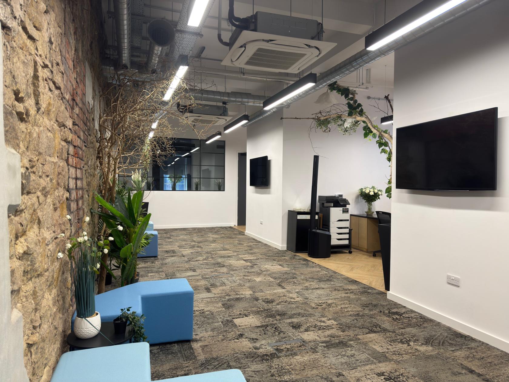 Large open plan area with ample space for 50 people. Reception desk as soon as you walk into the Garde 2 listed building. Large windows allowing natural light to fill the room.