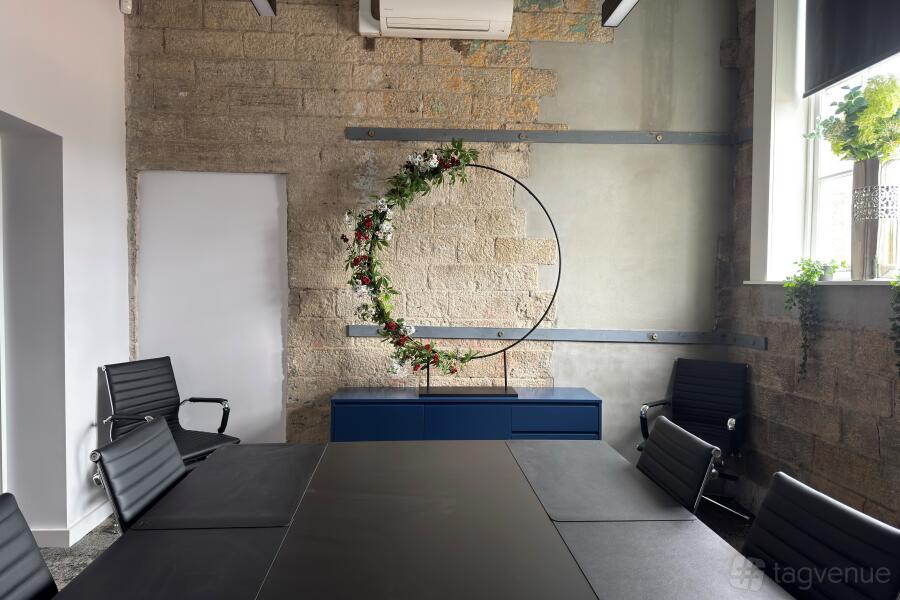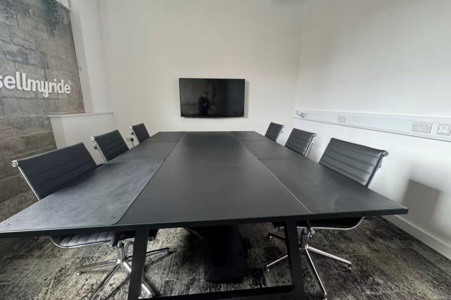 A more intimate room is also available with a meeting desk and space for 8 people. Again a large TV is present.