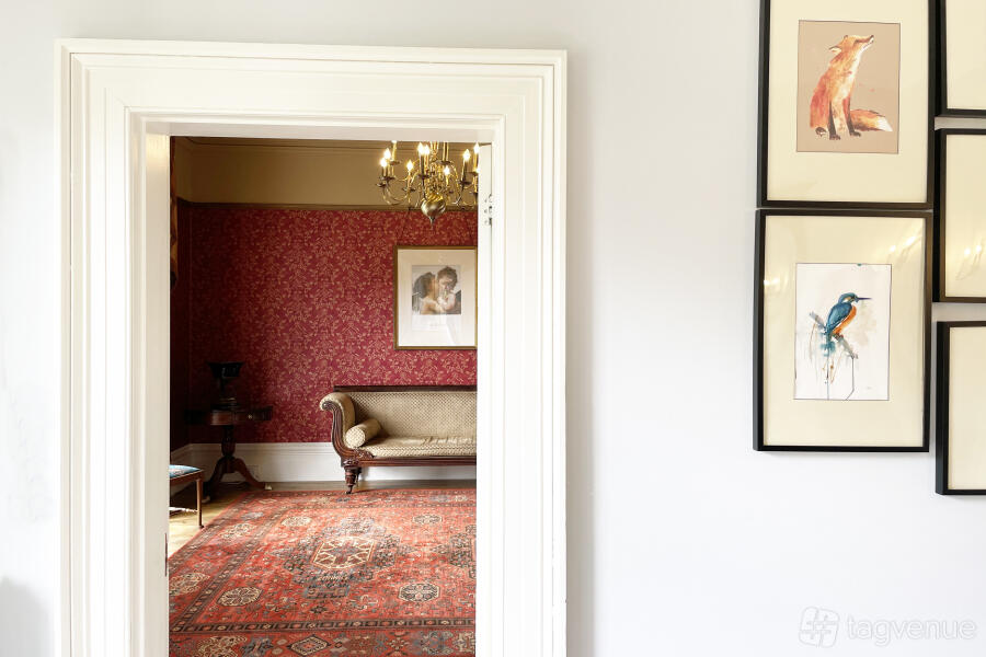 The Banqueting Hall is an exquisite room ideal for evening receptions, galas, and charity events. Featuring luxurious silk-lined walls, stunning chandeliers, and two sets of double doors opening to a patio and private garden, this space provides a grand setting for memorable occasions.