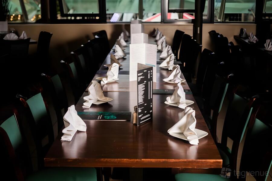 The downstairs area offers a warm and welcoming ambiance, enhanced by the convenience of a fully-stocked bar. Guests can enjoy a wide selection of beverages while mingling in a relaxed and intimate setting. The semi-private nature of this space provides just the right amount of exclusivity, allowing your event to feel special without being completely secluded from the lively atmosphere of the restaurant.