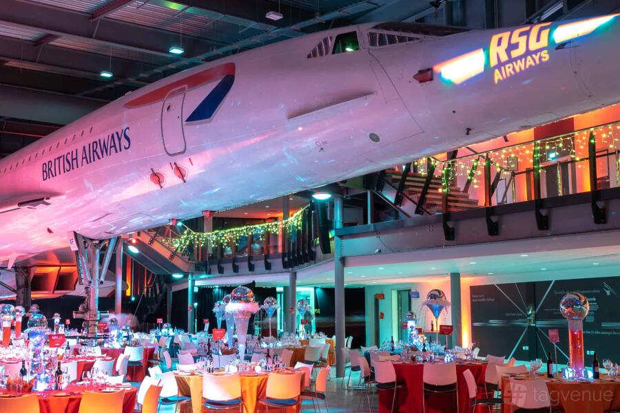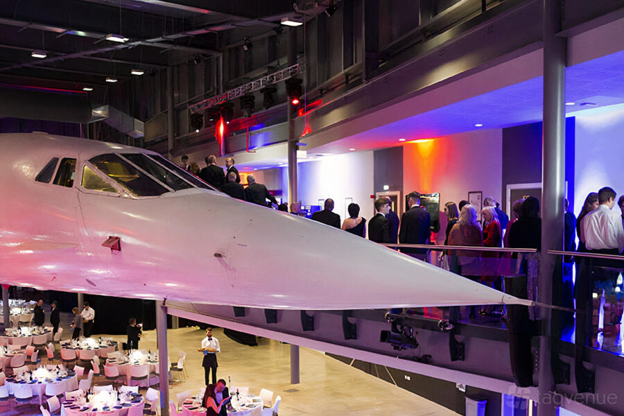 A standout feature of Aerospace Bristol is the Concorde Gallery, which houses the iconic Concorde plane. This gallery serves as a flexible space for events, accommodating up to 550 guests for functions ranging from corporate meetings to weddings. Positioned under the wings of the famous aircraft, the gallery offers a unique and elegant setting with a touch of aviation history.