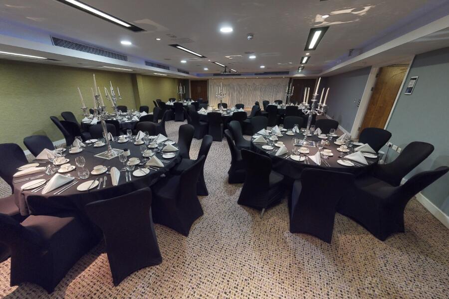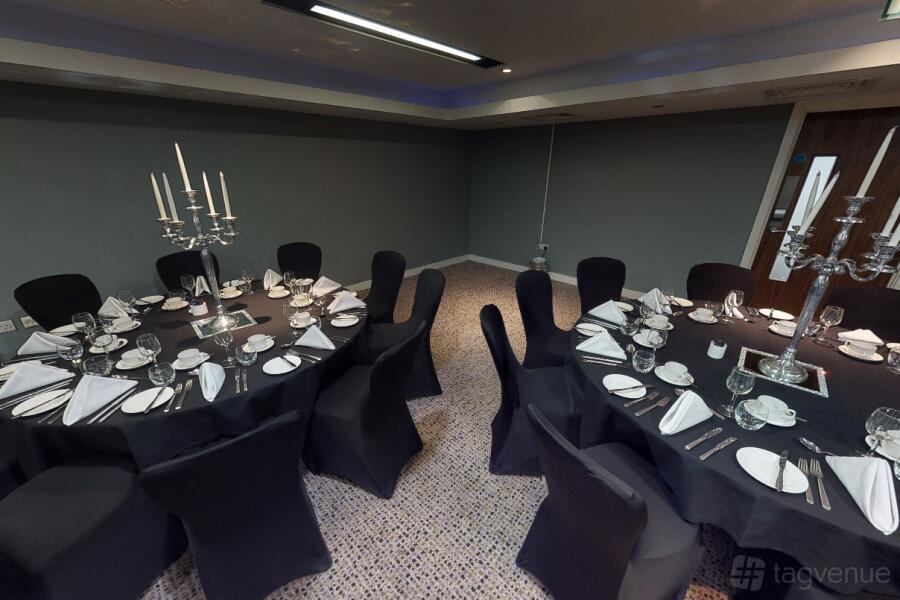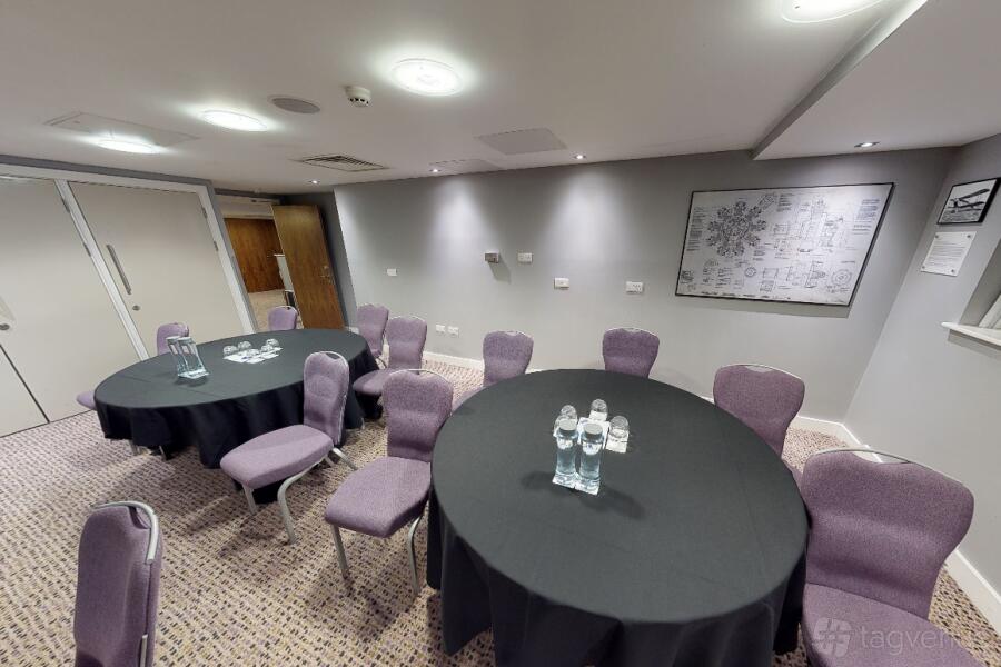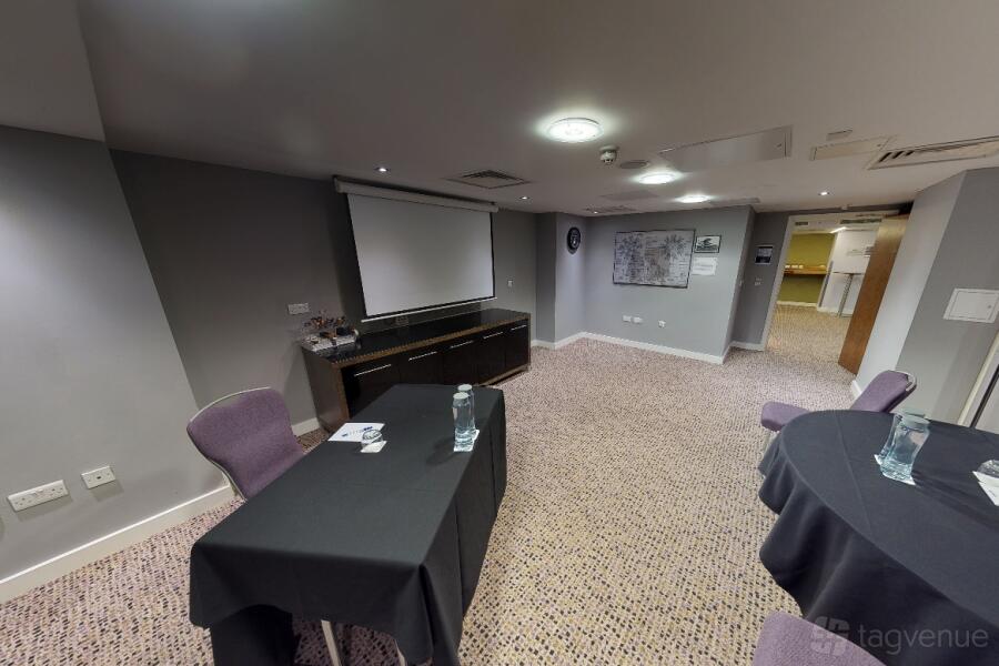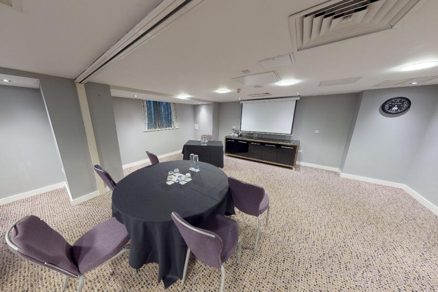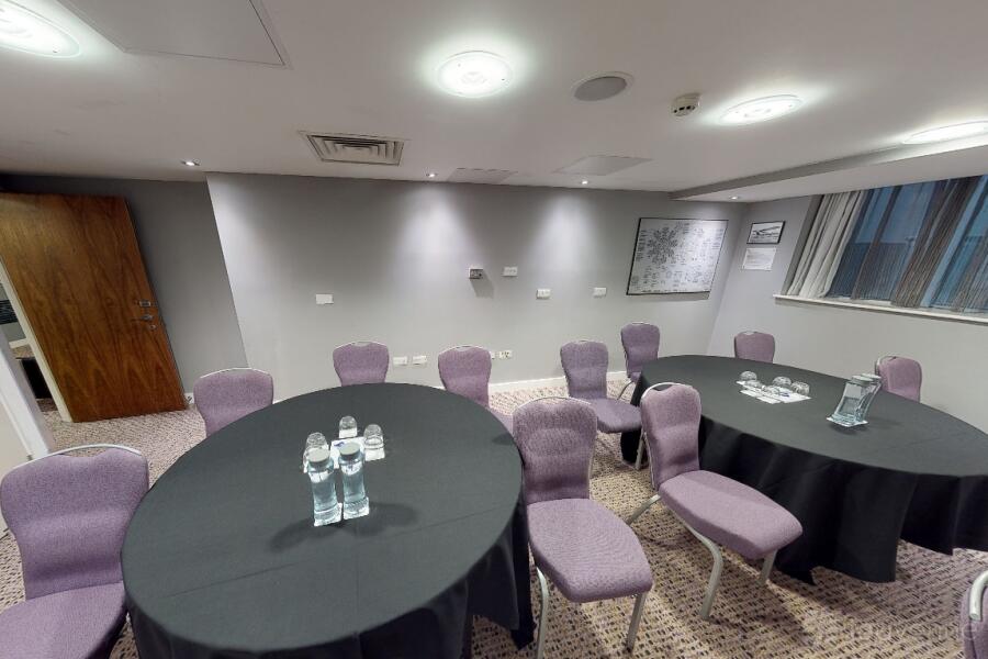 The Titan Suite at the Radisson Blu Hotel in Bristol is a professional space, ideal for business meetings and conferences. Natural light floods the room through the window, creating a bright atmosphere.