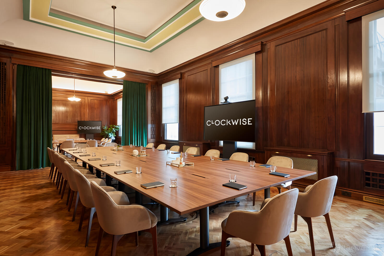 Looking for a boardroom for your next meeting in Bromley? Located at Clockwise Bromley, within the historic Old Town Hall, this office center offers a space for up to 26 people. It comes equipped with three 65” screens and Creston video conferencing system, supporting in-person, virtual, or hybrid meetings. The boardroom features privacy glass and refreshments.