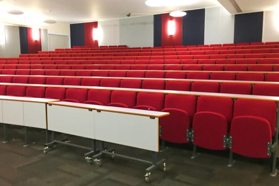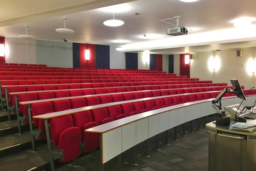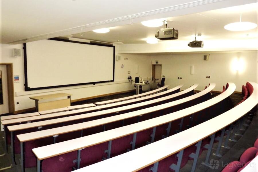 This tiered lecture theatre in our Science Centre was built in 2018, so it’s a state-of-the-art space with modern equipment, including a projector and PA system. Conferences, large meetings, and seminars can all be held in this room. It has seats for up to 292 attendees.