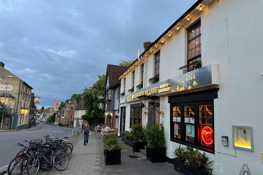 A 7-8 minute walk from the city centre and 4-5 minutes from punting, with a large council parking area across the road.