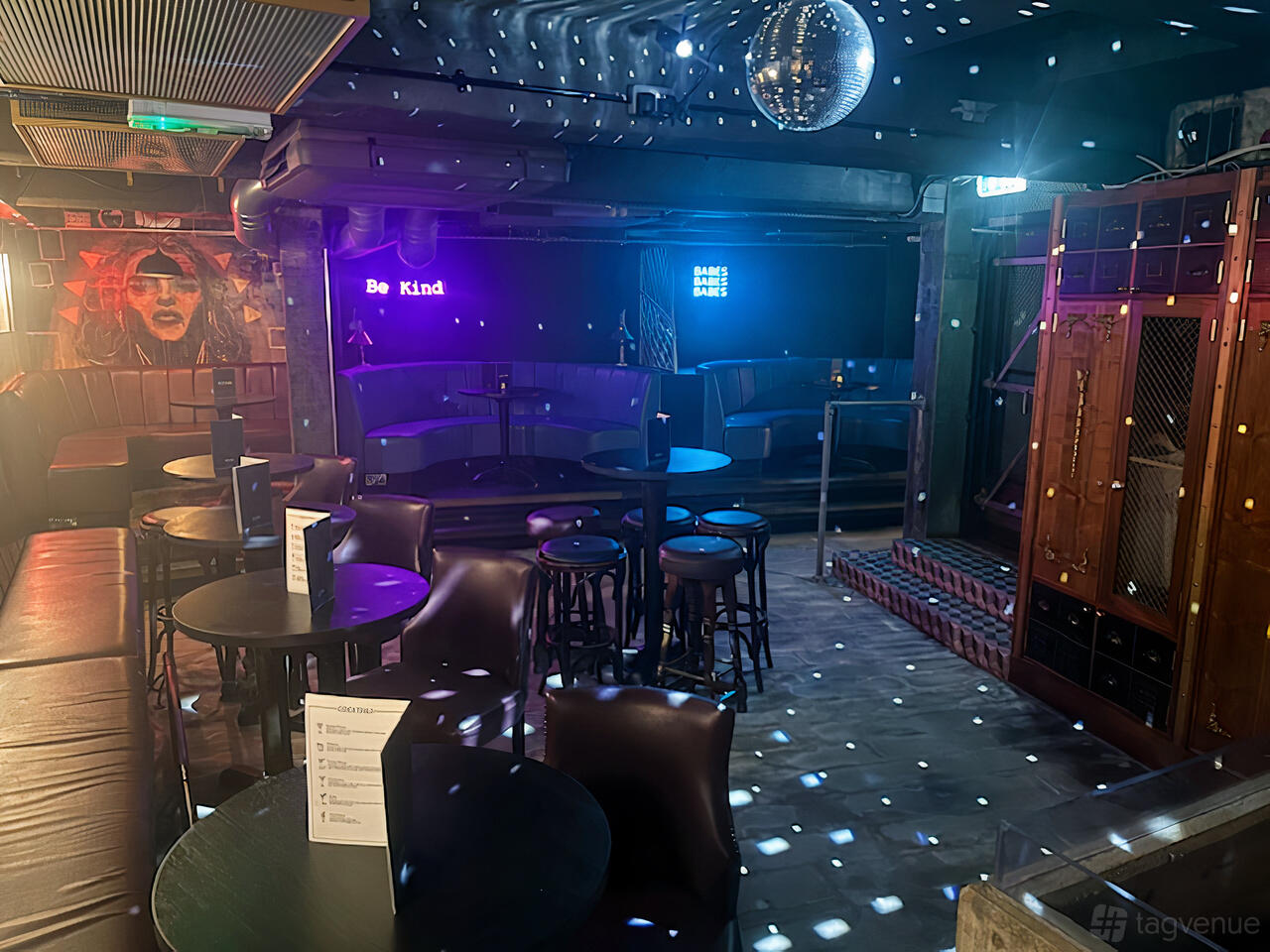 The John transforms Canterbury's old Victorian toilets into a stylish, industrial-style venue for 50–100 guests. The venue has brick walls, arches, low lighting, three large booths, a DJ-ready sound system, and a bar.