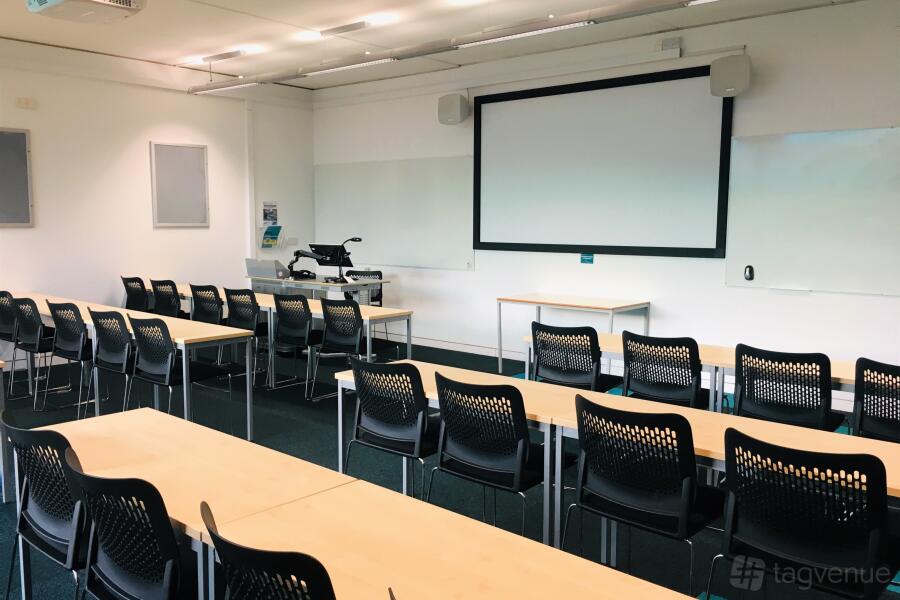 When hiring a large classroom at our venue, you’re getting access to a versatile space equipped with a projector. Each room can be transformed to have the seating arrangement that fits your purposes best, including the boardroom and café layouts. These rooms, which can accommodate up to 60 people, are perfect for conferences, meetings, seminars, or breakout spaces.