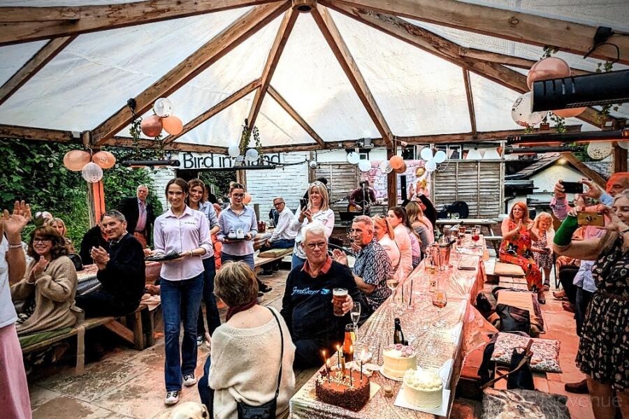 Our venue is ideal for birthdays, anniversaries, and special occasions, with a warm, homely atmosphere. Please decorate it and make it your own! The main restaurant comfortably seats up to 40 guests for a sit-down meal, or 70 for a delicious hot buffet. The cosy bar area fits 30 guests standing, perfect for more informal mingling. Step outside and you’ll find our stunning covered and heated garden space – great for all-weather parties of all occasions, day or night.