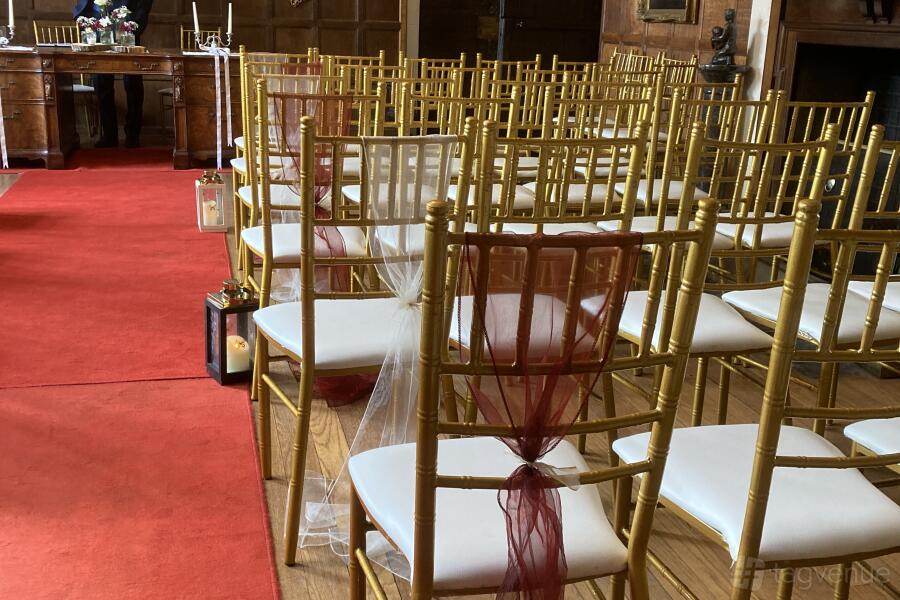 2. Wedding Ceremony at c6/7 pm & the use of our ceremony chairs, covers & bows on the aisle chairs